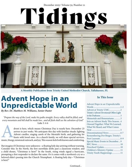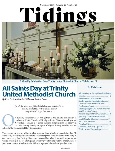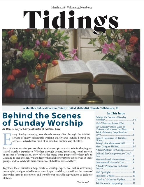 Trinity has a long and distinguished heritage of faithful ministry in downtown Tallahassee, Florida. What began as a missionary outpost to the new town of Tallahassee in 1824 is now an inclusive, intergenerational church that worships together, shares life in faith, and serves our community and world. We welcome all who hope to discover, deepen, and live out their Christian faith in meaningful ways. You are welcome here.