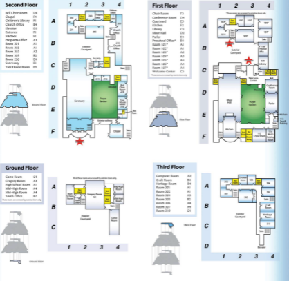 Our facilities have grown over the years to the point that they now span over half a city block. They include an auspicious main sanctuary, intimate James Chapel, comfortable and versatile Moor Hall, classrooms, Trinity Preschool facility, meeting rooms, parlor, and library. Outside are our Prayer Garden, Memorial Garden, and children's playground. The use of Trinity's facilities is overseen by the Trustees.