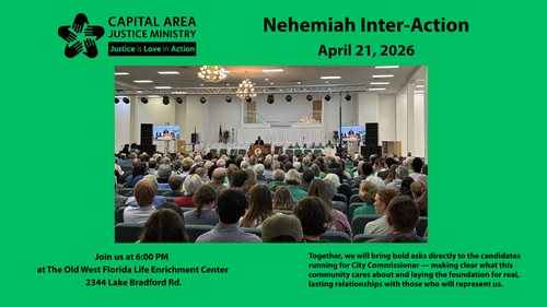 Join us at 6:00 p.m. on April 21 at the Old West Florida Life Enrichment Center, 2344 Lake Bradford Road, for the Nehemiah Inter-Action! Together, we will bring bold asks directly to the candidates running for City Commission — making clear what this community cares about and laying the foundation for real, lasting relationships with those who will represent us. Our goal: 150 Trinity voices in the room. We're offering dinner and carpooling to help make that happen! You can register for dinner and carpooling by clicking the link below.